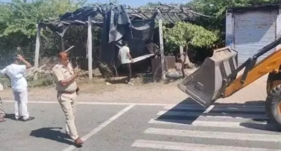 गंगापुर( दिनेश लक्षकार)पोटला कस्बें में सोमवार को अवैध मांस की दुकानों के खिलाफ प्रशासन द्वारा बड़ी कार्रवाई की गई। प्रशासन द्वारा अवैध रूप से संचालित मांस मीट की आधा दर्जन दुकानों जम्मीदोंज किया गया . पोटलां पुलिस चौकी प्रभारी अर्जुन लाल गुर्जर ने बताया कि क्षेत्र में अवैध रूप संचालित कामों लेकर हो रही कार्रवाई के अनुसार कार्यवाही की गई इस दौरान कस्बे में संचालित अलग-अलग इलाकों में दबिश दी गई एवं प्रशासन द्वारा बुलडोजर चलवाकर दुकानों को हटाया गया. इस दौरान नेशनल हाईवे बाई पास, वाटर वर्क्स के पास, आईसीआईसीआई बैंक के समीप सहित कस्बे में चल रही अवैध मांस की दुकानों पर कार्रवाई करते हुए बुलडोजर चलवाकर हटाया गया ।प्रशासन द्वारा चलाए गए इस अभियान से दुकान मालिकों में हड़कंप मच गया। ग्रामीणों का कहना है कि सड़क किनारे खुले में मांस की बिक्री होने से लोग परेशान थे। दुकानदार मांस के अवशेष और खून खुले में फेंक देते थे। एवं बचे हुए अवशेषों को रोड़ किनारे ही जलाया जाता था जिससे दुर्गंध आसपास फैलता था और वातावरण दूषित हो रहा था। इससे राहगीरों को आवागमन में भी परेशानी हो रही थे। ग्रामीणों ने प्रशासन द्वारा की गई कार्रवाई को लेकर धन्यवाद ज्ञापित किया गया । इस दौरान गंगापुर उपखंड अधिकारी राजेश विश्नोई, सहाड़ा तहसीलदार विरेन्द्र सिंह, सहाड़ा पंचायत समिति विकास अधिकारी गजेन्द्र सिंह, पोटलां नायब तहसीलदार प्रेमचंद, गिरदावर महेन्द्र सिंह, पटवारी भरत मीणा, पोटलां पुलिस चौकी प्रभारी अर्जुन लाल गुर्जर, रामनिवास, रवि कुमार सहित कई प्रशासनिक अधिकारी मौके पर मौजूद रहे।