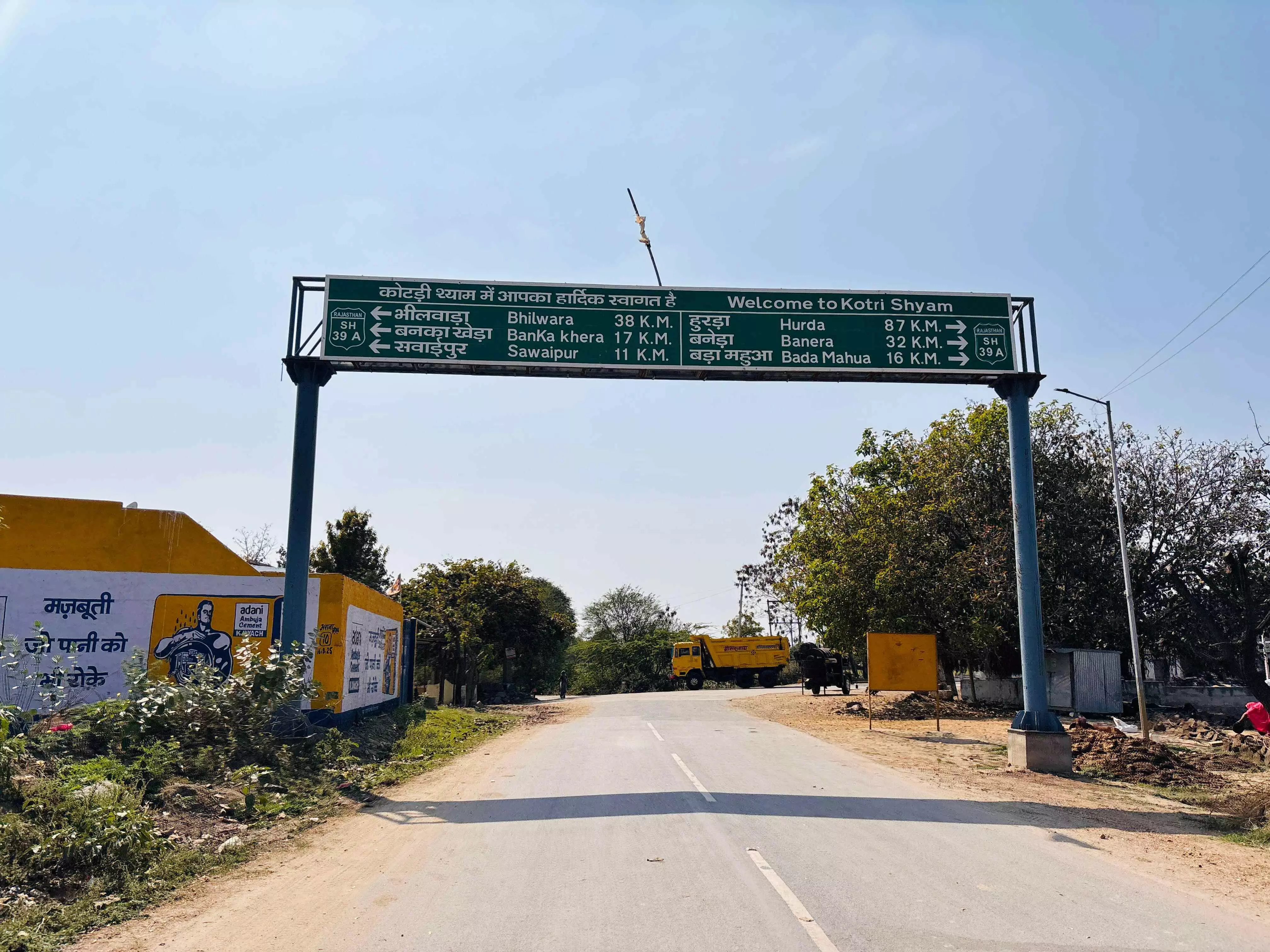 प्रथम रास्ता: धायलों का खेड़ा, बलिया खेड़ा (बोर्ड पर इसे सवाईपुर-भीलवाड़ा बताया गया है)।
