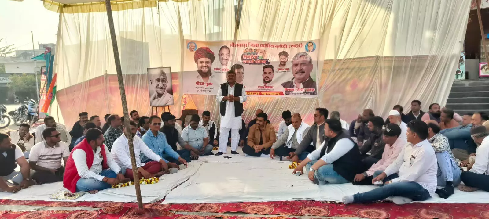 भीलवाड़ा | जिला कांग्रेस कमेटी (शहर) ग़रीब नवाज़ मंडल द्वारा मनरेगा बचाओ आंदोलन के तहत ग़रीब नवाज़ नगर में एक दिवसीय अनशन का आयोजन किया गया। मंडल प्रभारी उस्मान पठान ने जानकारी देते हुए बताया कि यह अनशन दिनांक 19 जनवरी 2025 को दोपहर 1:00 बजे से शाम 4:00 बजे तक भवानी नगर चौराहा पर आयोजित किया गया।
