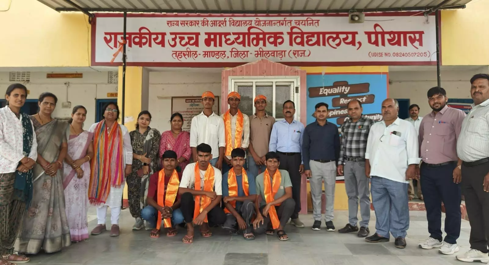भीलवाड़ा (हलचल)। मांडल तहसील के पीथास ग्राम स्थित राजकीय उच्च माध्यमिक विद्यालय में खुशी का माहौल देखा गया। विद्यालय का कक्षा 12वीं बोर्ड परीक्षा परिणाम उत्कृष्ट रहने पर विद्यालय प्रशासन द्वारा सम्मान समारोह आयोजित किया गया।