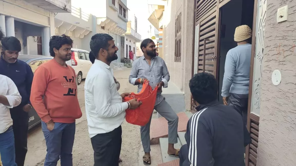 खजूरी (अक्षय पारीक)। मकर संक्रांति के पर्व पर श्री नंद गोपाल गौशाला के युवा कार्यकर्ताओं ने खजूरी गांव में घर-घर जाकर गौ माता के लिए भिक्षा के माध्यम से धन इकट्ठा किया। युवाओं के जोश के साथ ग्रामीणों का उत्साह भी देखने योग्य रहा।
