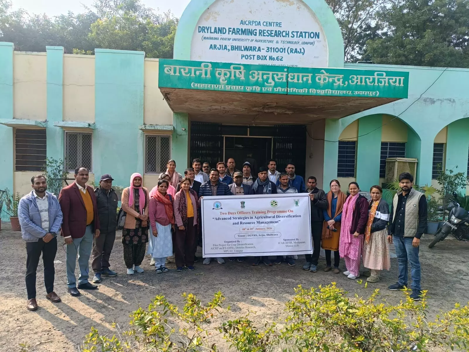 भीलवाड़ा । आरजिया महाराणा प्रताप कृषि एवं प्रौद्योगिकी विश्वविद्यालय के अनुसंधान निदेशालय के अंतर्गत फसल विविधीकरण परियोजना के तहत कृषि विविधीकरण एवं संसाधन प्रबंधन में उन्नत रणनीतियों पर दो दिवसीय कृषि विस्तार अधिकारियों के प्रशिक्षण कार्यक्रम का आयोजन बारानी कृषि अनुसंधान केन्द्र, आरजिया (भीलवाड़ा) में किया गया, जिसमें 30 से अधिक कृषि अधिकारियों एवं कृषि पर्यवेक्षकों ने भाग लिया।