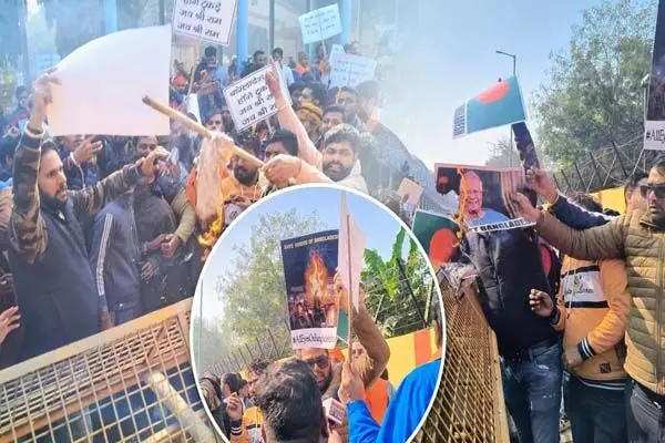 दिल्ली में बांग्लादेश उच्चायोग के बाहर प्रदर्शन, हिंदू युवक की हत्या का विरोध