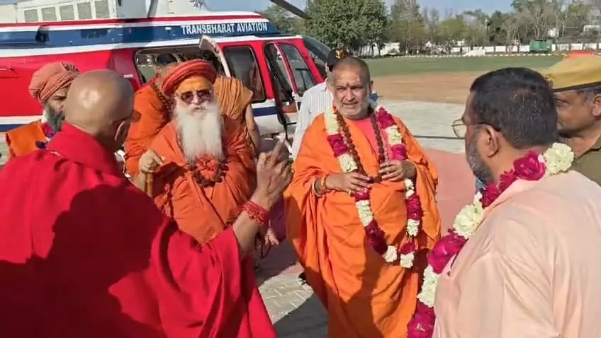 हेलीकॉप्टर से पहुंचे महामंडलेश्वर स्वामी गुरूशरणानंद महाराज