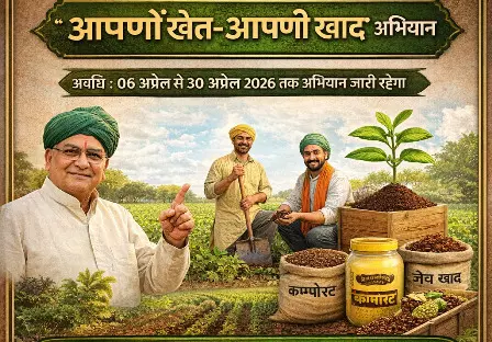 भीलवाड़ा/जयपुर। जलवायु परिवर्तन और रासायनिक उर्वरकों के बढ़ते दुष्प्रभावों के बीच राज्य में मृदा स्वास्थ्य संरक्षण और टिकाऊ कृषि को बढ़ावा देने के लिए "आपणों खेत-आपणी खाद" अभियान शुरू किया जा रहा है। कृषि एवं उद्यानिकी मंत्री डॉ. किरोड़ी लाल ने इस राज्यव्यापी जन-जागरूकता अभियान की घोषणा की है, जो 6 अप्रैल से 30 अप्रैल 2026 तक संचालित होगा। इस अभियान के तहत भीलवाड़ा जिले सहित पूरे प्रदेश के किसानों को रासायनिक उर्वरकों पर निर्भरता कम कर जैविक एवं प्राकृतिक खेती की ओर प्रेरित किया जाएगा।