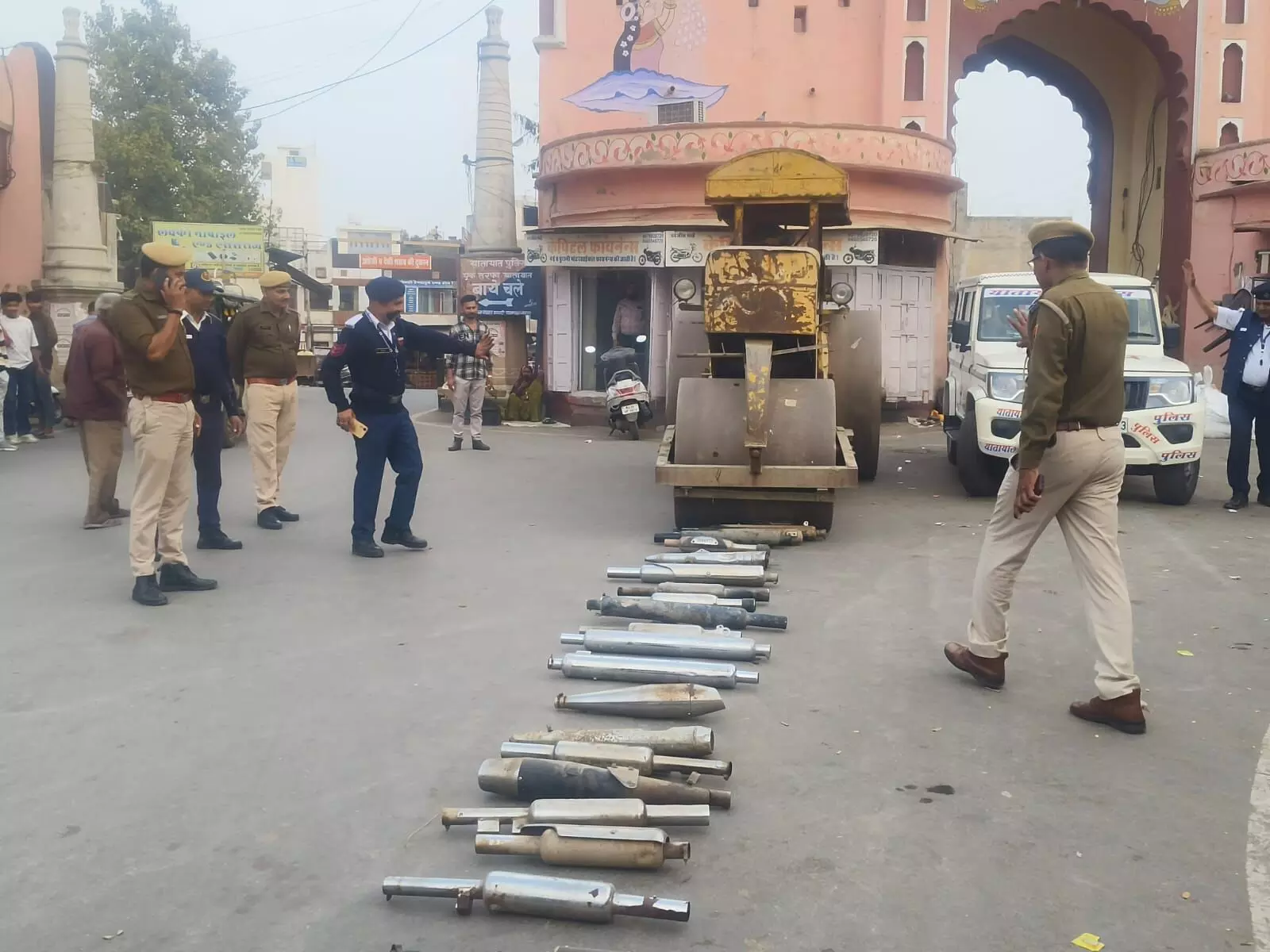 तेज आवाज और कानफोड़ू साइलेंसर से लोगों में दहशत फैलाने वालों के खिलाफ चलाया जा रहे अभियान के तहत कार्रवाई की गई। इस अभियान के तहत राजस्थान पुलिस की यातायात शाखा द्वारा लगातार कार्रवाई की जा रही है। कार्रवाई के दौरान दौरान डीएसपी राजेश कसाना, ट्रैफिक इंचार्ज पूनम चंद विश्नोई सहित यातायात पुलिस टीम मौजूद रही। इस दौरान पुलिस ने डीएसपी राजेश कसाना ने शहरवासियों से नियमों का पालन करने और ध्वनि प्रदूषण से बचने की अपील की।
