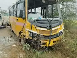 अलवर | राजस्थान के बानसूर क्षेत्र में शुक्रवार सुबह एक बड़ा सड़क हादसा होने से बच गया। क्षेत्र के गुता शाहपुर मार्ग पर स्थित ईशरा का बास गांव के पास बच्चों से भरी एक स्कूल बस और पिकअप वाहन के बीच आमने-सामने की जोरदार भिड़ंत हो गई। इस भीषण टक्कर में पिकअप चालक गंभीर रूप से घायल हो गया, जिसे प्राथमिक उपचार के बाद हायर सेंटर रेफर किया गया है। गनीमत रही कि बस में सवार सभी स्कूली बच्चे पूरी तरह सुरक्षित हैं।