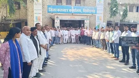 शंकराचार्य अविमुक्तेश्वरानंद के अपमान पर चित्तौड़गढ़ में आक्रोश: कांग्रेस ने घेरा कलेक्ट्रेट, राष्ट्रपति के नाम सौंपा ज्ञापन