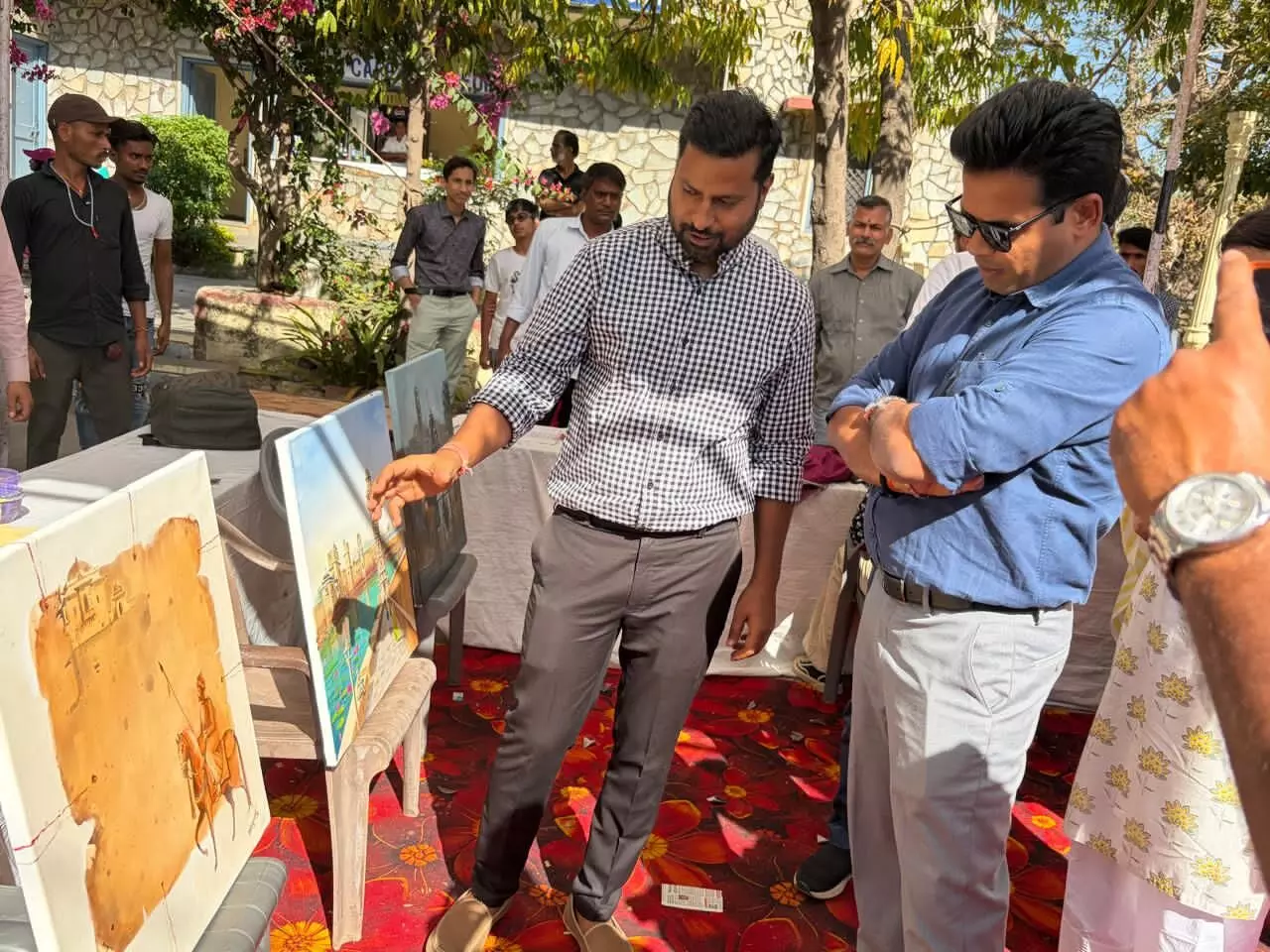 इस अवसर पर प्रशिक्षु आईएएस रविंद्र मेघवाल, उपखंड अधिकारी बीनू देवल, नगर विकास न्यास के सचिव कैलाश गुर्जर, जिला उद्योग केन्द्र के महाप्रबंधक राहुल देव सिंह, दुर्ग संरक्षण सहायक प्रेम शर्मा, सहायक वन संरक्षक (मुख्यालय) भावना शर्मा, उप निदेशक सांख्यिकी शबनम खोरवाल तथा तहसीलदार विपिन ने भी आर्ट कैंप का अवलोकन किया।