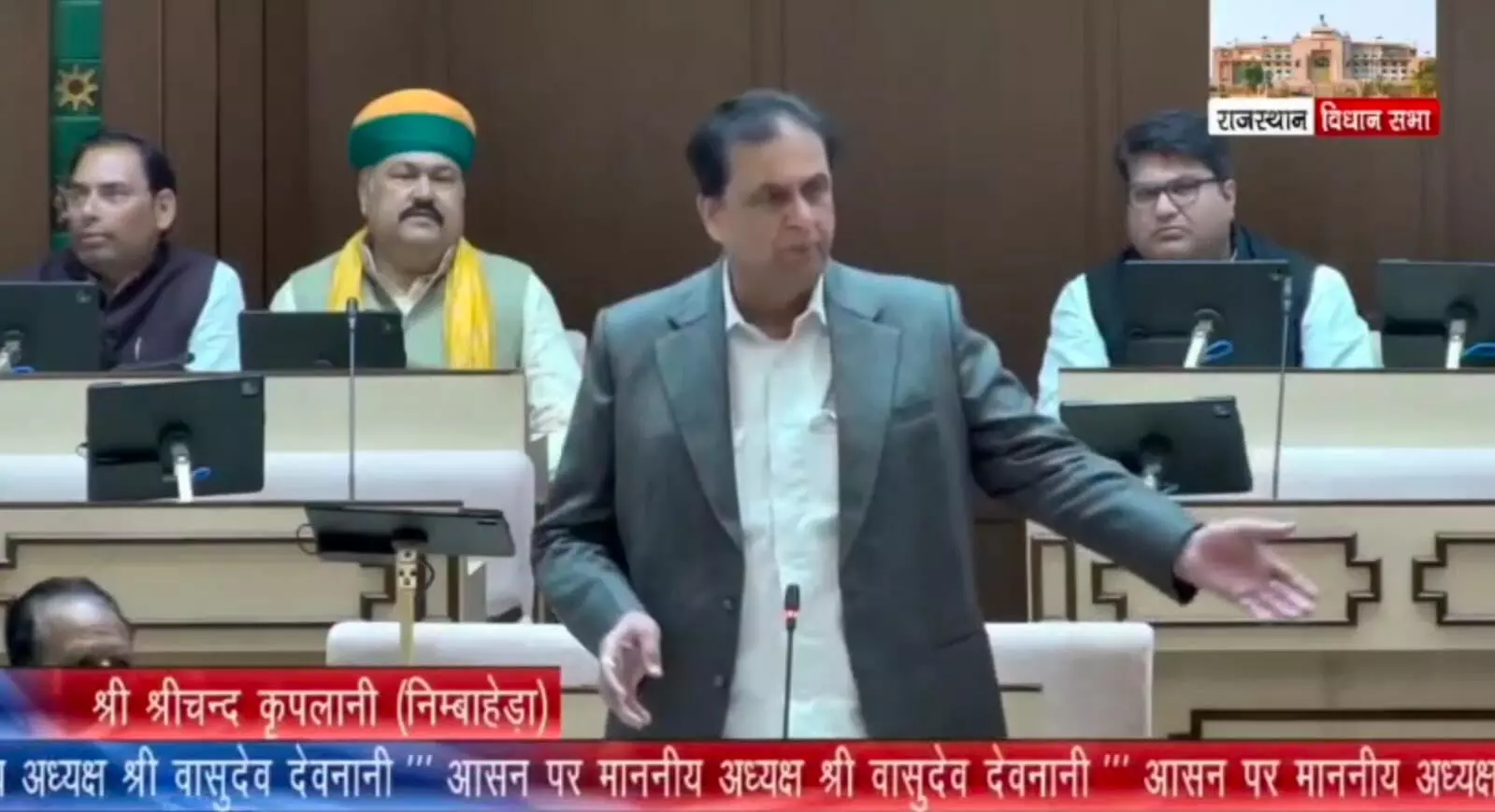 निंबाहेड़ा। निंबाहेड़ा विधानसभा क्षेत्र सहित चित्तौड़गढ़ एवं प्रतापगढ़ जिलों के विभिन्न हिस्सों में हाल ही में हुई अतिवृष्टि एवं ओलावृष्टि से किसानों की फसलें व्यापक रूप से प्रभावित हुई हैं। इस गंभीर समस्या को लेकर पूर्व यूडीएच मंत्री एवं निंबाहेड़ा विधायक श्रीचंद कृपलानी ने गुरुवार को राजस्थान विधानसभा में पर्ची के माध्यम से सदन का ध्यान आकर्षित किया।