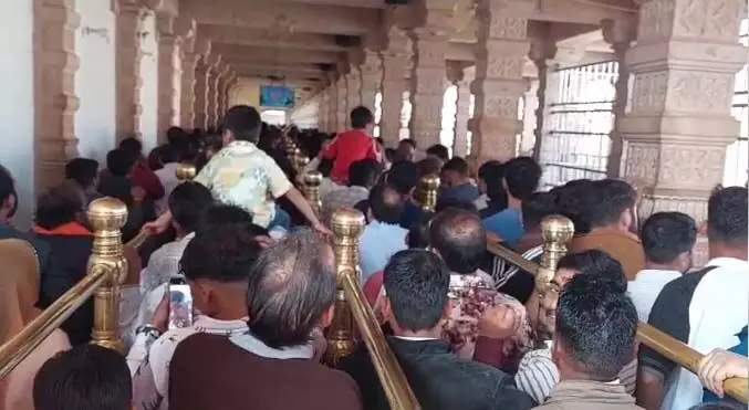 नववर्ष पर सांवलिया धाम में श्रद्धालुओं की भारी भीड़, रास्तों पर लंबी वाहनों की कतारे