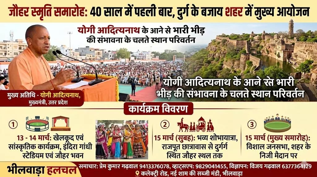चित्तौड़गढ़। चित्तौड़गढ़ दुर्ग की ऐतिहासिक विरासत और वीरांगनाओं के बलिदान की याद में आयोजित होने वाला 'जौहर स्मृति समारोह' इस बार इतिहास रचने जा रहा है। पिछले चार दशकों में यह पहली बार होगा जब समारोह का मुख्य आयोजन दुर्ग स्थित फतहप्रकाश महल प्रांगण के बजाय नीचे शहर में आयोजित किया जाएगा।