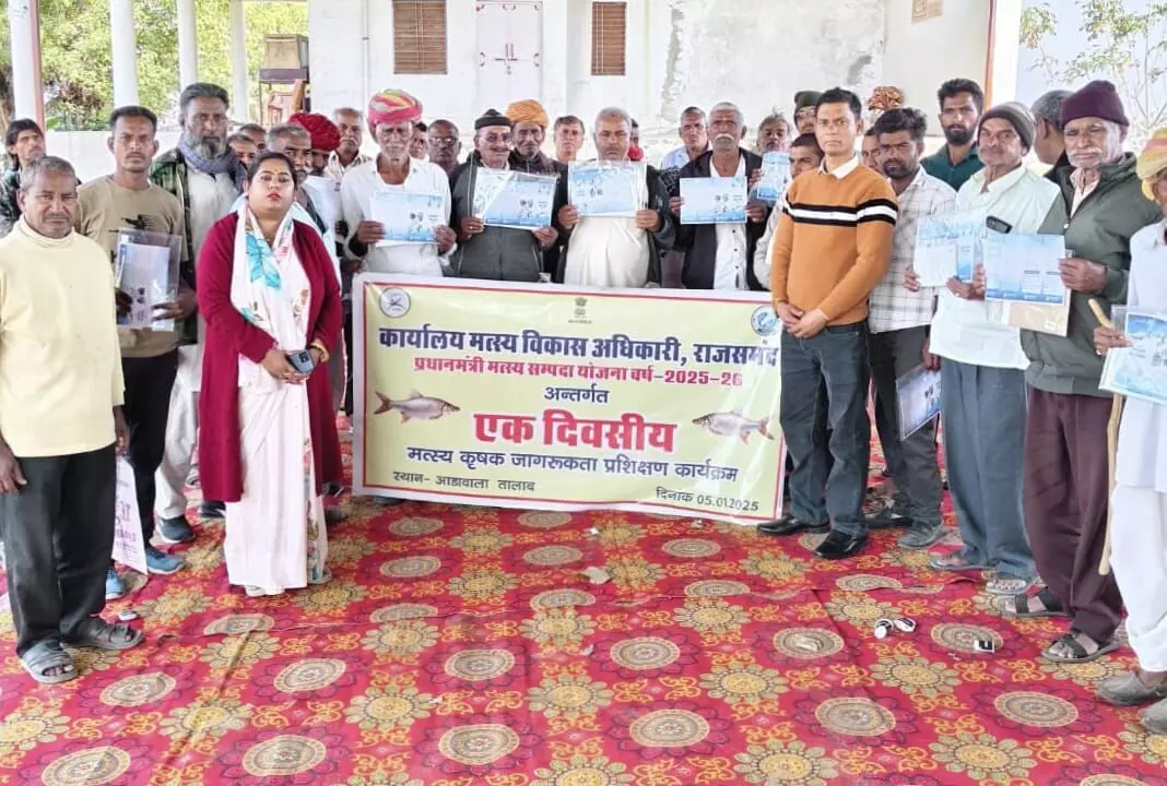 राजसमंद। प्रधानमंत्री मत्स्य संपदा योजना वर्ष 2025-26 के तहत मत्स्य विभाग जिला राजसमंद द्वारा एक दिवसीय मत्स्य कृषक जागरूकता प्रशिक्षण कार्यक्रम 5 फरवरी 2026 को आडावाला तालाब (आमेट) पर आयोजित किया गया। प्रशिक्षण कार्यक्रम का उद्देश्य मत्स्य किसानों को आधुनिक मछली पालन तकनीकों, सरकारी योजनाओं एवं आय वृद्धि के उपायों के बारे में जागरूक करना रहा।