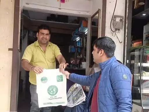 देवगढ़ में सिंगल यूज प्लास्टिक के खिलाफ संयुक्त अभियान, कपड़े की थैलियां वितरित