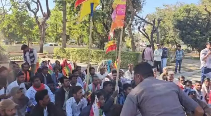 राजसमंद । जिले की पिपलांत्री पंचायत क्षेत्र में स्थित रामदेव मंदिर को तोड़े जाने के मामले ने तूल पकड़ लिया है। शुक्रवार को सर्व समाज के लोगों ने एकजुट होकर रैली निकाली और जिला कलेक्टर कार्यालय परिसर में प्रदर्शन किया। प्रदर्शनकारियों ने मामले की निष्पक्ष जांच की मांग को लेकर कलेक्टर के नाम ज्ञापन सौंपा।