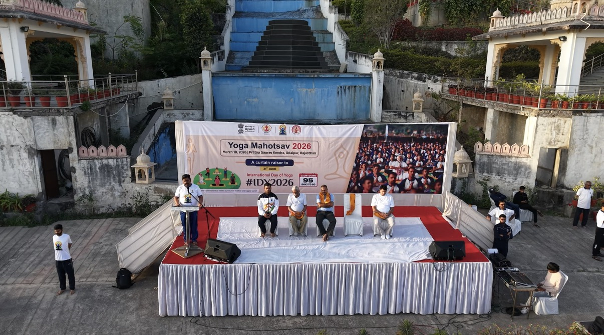 उदयपुर | अंतर्राष्ट्रीय योग दिवस 2026 की तैयारियों का शंखनाद झीलों की नगरी उदयपुर में भव्य रूप से हो चुका है। आयुष मंत्रालय द्वारा चयनित देश के प्रथम 100 प्रमुख शहरों में उदयपुर को भी शामिल किया गया है, जिसके तहत बुधवार, 18 मार्च 2026 को राष्ट्रीय तीर्थ प्रताप गौरव केंद्र पर भव्य 'योग महोत्सव' का आयोजन किया गया।
