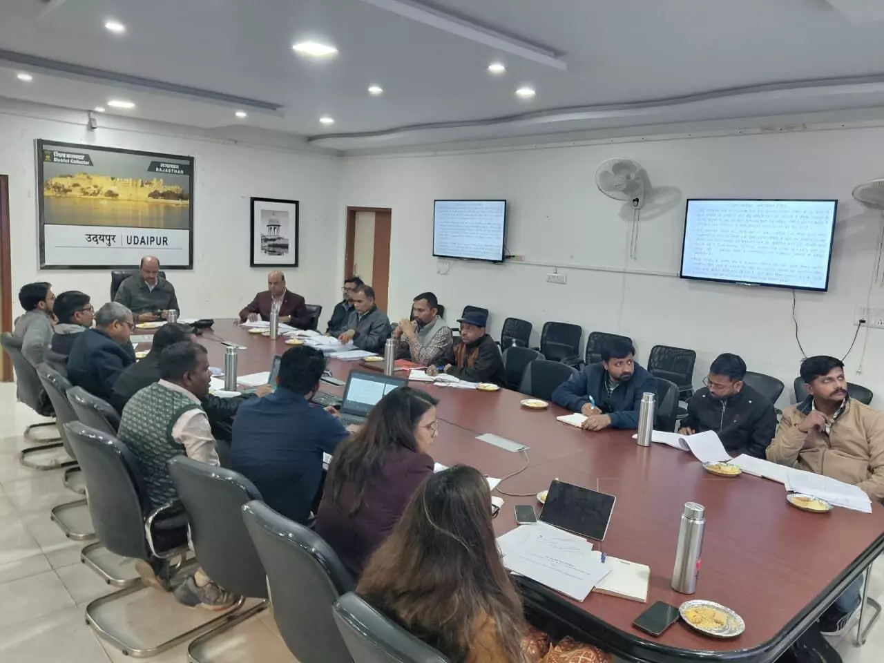 उदयपुर । जिला जल एवं स्वच्छता समिति की बैठक मंगलवार को जिला कलेक्ट्रेट मिनी सभागार में जिला कलेक्टर नमित मेहता के निर्देशन में अतिरिक्त जिला कलेक्टर प्रशासन दीपेंद्र सिंह राठौर की अध्यक्षता में आयोजित हुई। इस अवसर पर एडीएम राठौर ने जल सेवा आंकलन के तहत जहां जल जीवन मिशन के तहत सेवाएं शुरू हो चुकी है वहां आवश्यक पैरामीटर्स के संबंध में जांच करने के निर्देश देते हुए कहा कि इसके तहत मुख्य रूप से पेयजल आपूर्ति, नियमितता तथा अन्य नॉर्म्स की पालना सुनिश्चित होने की जांच करने के निर्देश दिए। अधीक्षण अभियंता रविंद्र कुमार चौधरी ने बताया कि वर्तमान में उदयपुर जिले में ऐसी 14 ग्राम पंचायते हैं जहां जलसेवा आंकलन किया जाना है जो की विलेज वॉटर सैनिटेशन कमेटी के जरिए किया जाएगा। इस दौरान बैठक में जल जीवन मिशन की जिले में प्रगति की भी समीक्षा हुई तथा एडीएम द्वारा निर्धारित लक्ष्यों की शीघ्र प्राप्ति के संबंध में दिशा निर्देश दिए गए। बैठक में विभाग के एक्सईएन ललित कुमार नागौरी सहित अभियंता एवं अन्य कर्मचारी मौजूद रहे।