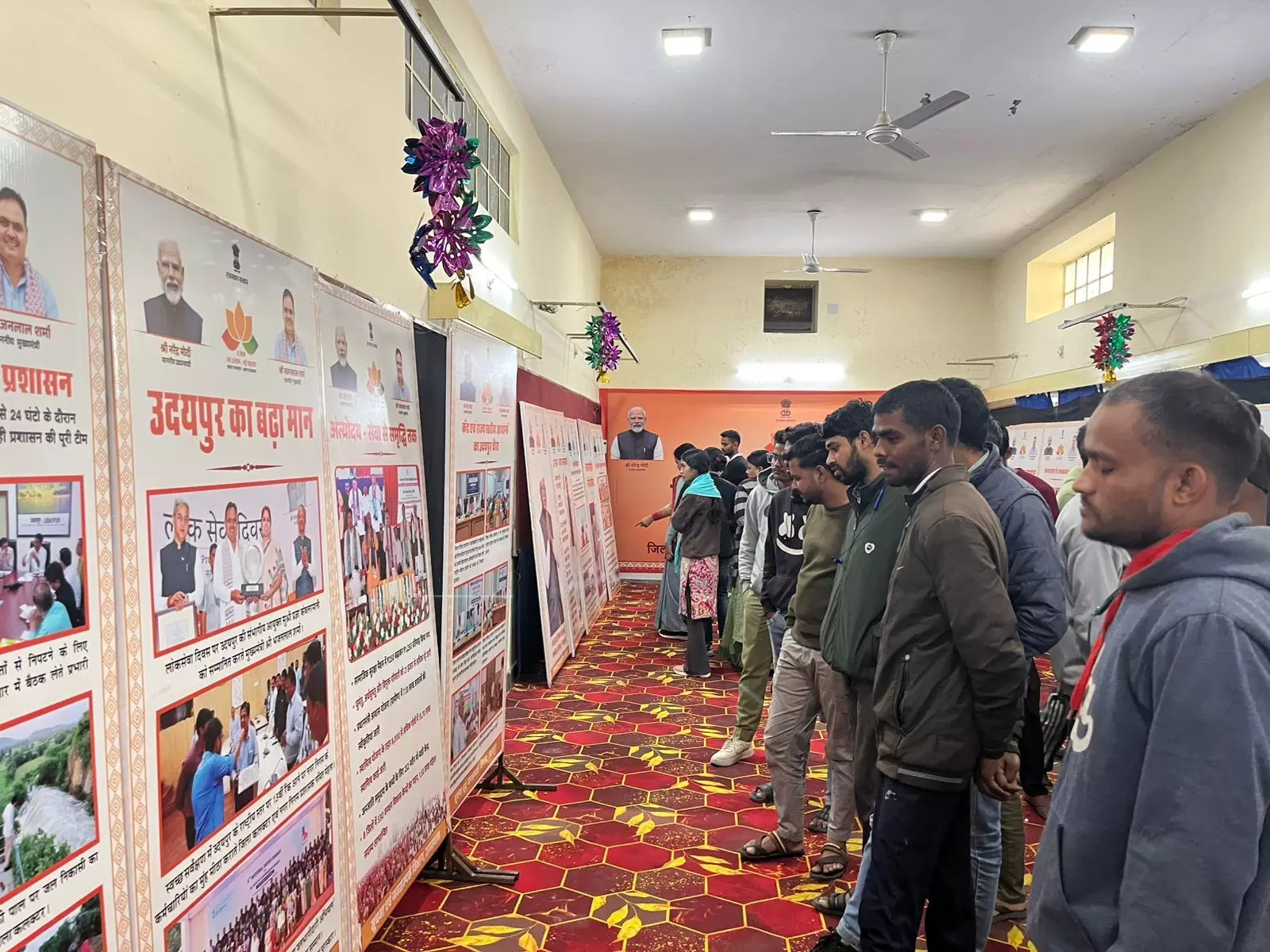 उदयपुर,। राज्य सरकार के कार्यकाल के दो वर्ष पूर्ण होने के उपलक्ष्य में जिला प्रशासन एवं सूचना एवं जनसम्पर्क विभाग के तत्वावधान में सूचना केंद्र परिसर में आयोजित जिला स्तरीय विकास प्रदर्शनी को लेकर आमजन में उत्साह देखने को मिल रहा है। प्रदर्शनी के दूसरे दिन बुधवार को बड़ी संख्या में युवाओं, विद्यार्थियों एवं शहरवासियों ने प्रदर्शनी का अवलोकन किया और राज्य सरकार की जनकल्याणकारी योजनाओं व उपलब्धियों की विस्तृत जानकारी प्राप्त की।