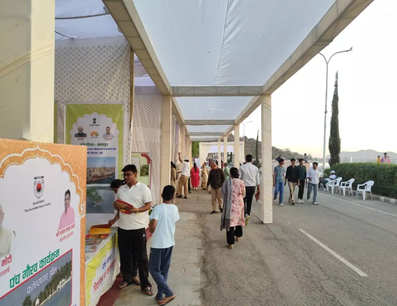 उदयपुर, । विश्वप्रसिद्ध फतहसागर झील की पाल पर जिला प्रशासन द्वारा आयोजित जिला स्तरीय “पंच गौरव मेला एवं प्रदर्शनी” के दूसरे दिन शुक्रवार को बड़ी संख्या में पर्यटक, शहरवासी और छात्र-छात्राएं जिले के पंच गौरव से रूबरू होने पहुंचे। दिनभर मेले में रौनक बनी रही और लोगों ने विभिन्न स्टॉलों पर पहुंचकर उदयपुर जिले की विशिष्ट पहचान और गौरवशाली उपलब्धियों से जुड़ी जानकारियां प्राप्त कीं।