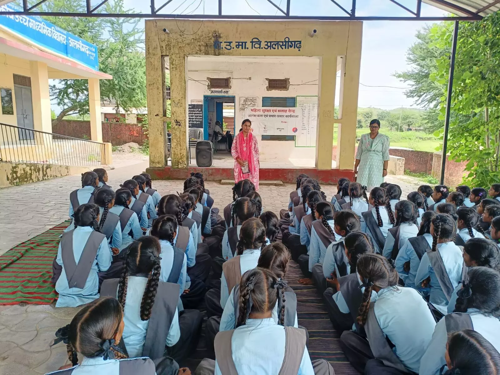 उदयपुर । महिला अधिकारिता विभाग के अंतर्गत विकल्प संस्थान द्वारा संचालित महिला सुरक्षा एवं सलाह केंद्र पुलिस थाना नाई के तत्वावधान में राजकीय उच्च माध्यमिक विद्यालय अलसीगढ़ में विशेष जागरूकता का आयोजन किया गया। सामाजिक परामर्शदाता हेमलता नागदा ने बालिकाओं को बाल विवाह, घरेलू हिंसा, महिला हेल्प लाइन नंबर 181, निःशुल्क कंप्युटर शिक्षा, गुड- टच, बेड- टच, वन स्टॉप सेंटर, बालिकाओं से जुड़ी योजनाएं व महिलाओं के साथ होने हिंसा आदि के बारे में जानकारी दी।