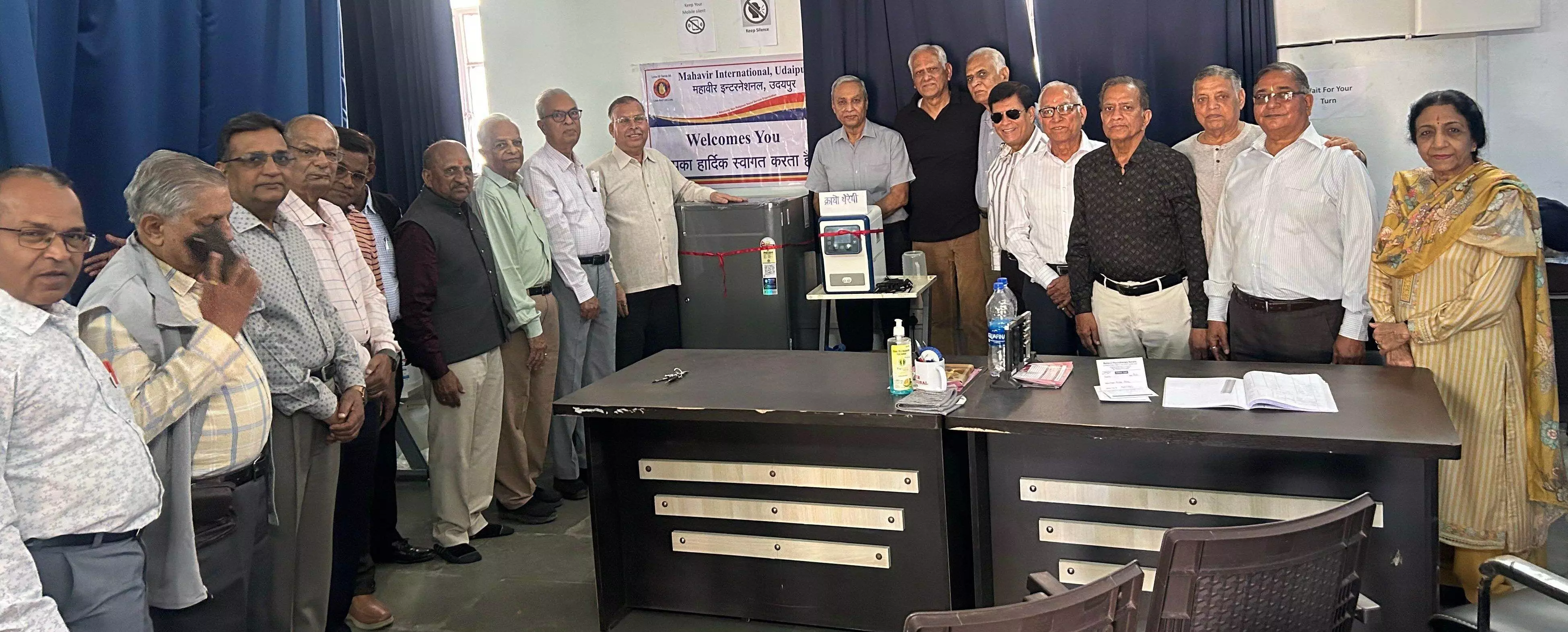 क्रायोथेरेपी मशीन के उद्घाटन अवसर पर केंद्र के वीर सुरेश बड़ीवाल, वीर अशोक खुर्दिया, मुख्य संयोजक वर्धमान मेहता, जॉन सचिव वीर राजकुमार नलवाया, ए.के. श्रीमाली, वीर जसवंत वर्डिया, वीर राजेंद्र सिंह भंडारी, जे.एस. बाबेल, वीर कमल कुमार जैन, डॉ. अजय कुमार सांखला सहित 40 से अधिक सदस्य उपस्थित थे।