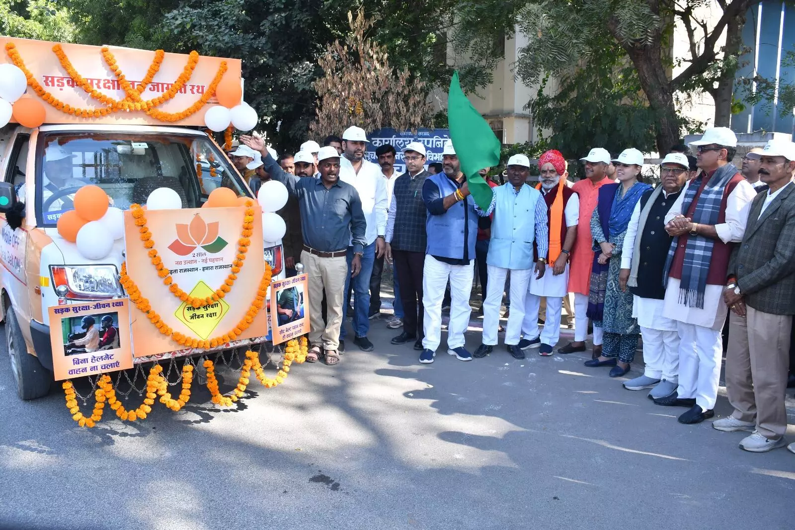 जागरूकता रैली को जिले के प्रभारी मंत्री हेमंत मीणा, राज्यसभा सांसद चुन्नीलाल गरासिया, उदयपुर ग्रामीण विधायक फूलसिंह मीणा, वल्लभनगर विधायक उदयलाल डांगी, गोगुन्दा विधायक प्रताप गमेती, संभागीय आयुक्त प्रज्ञा केवलरामानी, प्रादेशिक परिवहन अधिकारी ज्ञान देव विश्वकर्मा, यातायात पुलिस उपाधीक्षक अशोक आंजना, आधार फाउंडेशन के सीईओ नारायण चौधरी, समाजसेवी गजपाल सिंह राठौड़ सहित जनप्रतिनिधियों एवं प्रशासनिक अधिकारियों ने हरी झंडी दिखाकर रवाना किया।