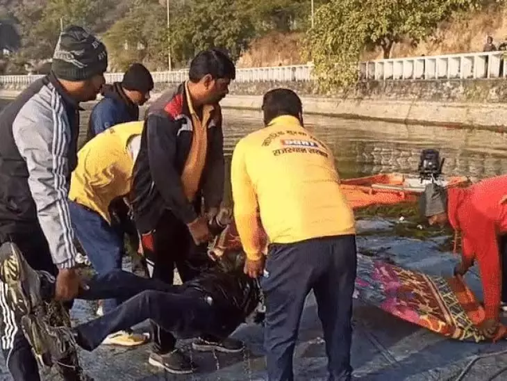 उदयपुर । फतहसागर झील में 18 साल युवक ने कूदकर सुसाइड कर लिया। सूचना पर सिविल डिफेंस की टीम मौके पर पहुंची। रेस्क्यू ऑपरेशन शुरू किया। करीब 2 घंटे की मशक्कत के बाद बुधवार सुबह शव को ढूंढकर बाहर निकाला और अंबामाता थाना पुलिस को सुपुर्द किया। इस दौरान मौके पर परिजन भी पहुंचे। जिनका रो-रोकर बुरा हाल था। पुलिस ने शव एमबी हॉस्पिटल मॉर्च्युरी शिफ्ट कराया। जहां पोस्टमॉर्टम कर परिजनों को शव सुपुर्द किया जाएगा। पुलिस ने बताया- मृतक की पहचान भारत खारोल (18) पुत्र चंद्र खारोल के रूप में हुई है। सुसाइड करने के कारणों का खुलासा नहीं हुआ है। पुलिस इसकी जांच में जुटी है। पुलिस ने बताया कि मंगलवार रात 8 बजे से मृतक युवक अपने घर पर मोबाइल छोड़कर निकला था। देर रात करीब 10:30 बजे राहगीरों ने उसे सौर वेधशाला वाली जेटी के पास से झील में छलांग लगाते हुए देखा था। उन्होंने पुलिस को सूचना दी। पुलिस मौके पर पहुंची और सिविल डिफेंस की टीम को भी बुलाया गया। लेकिन देर रात अंधेरा ज्यादा होने से रेस्क्यू नहीं किया गया। बुधवार सुबह रेस्क्यू ऑपरेशन चलाकर शव की तलाश की और 2 घंटे की मशक्कत के बाद बाहर निकाला। रेस्क्यू टीम में गोताखोर विजय नकवाल, भवानी शंकर विपुल चौधरी, बनेसिंह गुर्जर आदि शामिल थे।