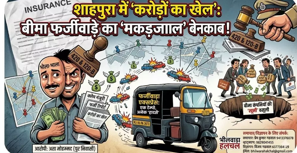 शाहपुरा/भीलवाड़ा। शाहपुरा पुलिस ने 'बीमा क्लेम' के नाम पर चल रहे एक ऐसे शातिर और सनसनीखेज रैकेट का भंडाफोड़ किया है, जिसकी स्क्रिप्ट किसी फिल्मी विलेन से कम नहीं है। इस खेल का मुख्य मोहरा बना एक थ्री-व्हीलर टेम्पो (नंबर RJ 06 PA 3673), जिसे कागजों पर इतनी बार 'दुर्घटनाग्रस्त' दिखाया गया कि बीमा कंपनियां भी चकरा गईं। करोड़ों रुपये की इस धोखाधड़ी ने पुलिस और बीमा जगत में हड़कंप मचा दिया है।