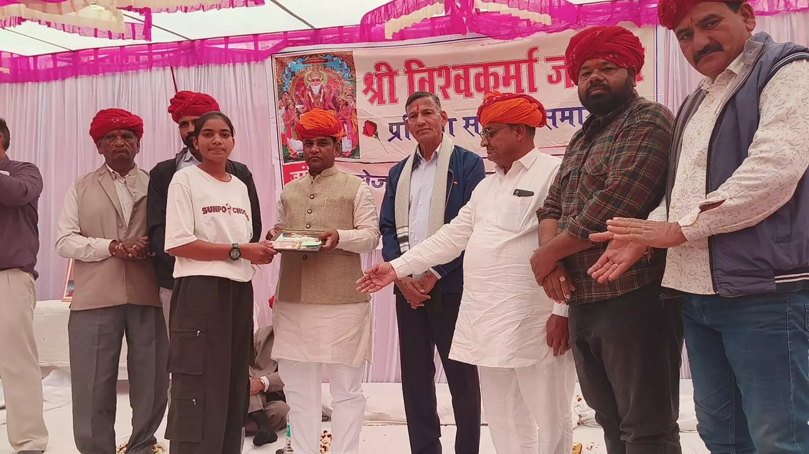शाहपुरा भैरू लाल लक्षकार | भगवान विश्वकर्मा जयंती का भव्य आयोजन जांगिड़ समाज छात्रावास में किया गया जांगिड़ समाज विकास समिति के अध्यक्ष कैलाश जांगिड़ ने बताया कि प्रातः 10:00 बजे महलों के चौक से शोभायात्रा का आयोजन किया गया जिसमें महिलाएं कलश लेकर चल रही थी एवं पुरुष भी भगवान विश्वकर्मा की वंदना करते हुए चल रहे थे शानदार शोभा यात्रा का आयोजन हुआ जिसकी प्रशंसा सभी नगर वासियों ने की प्रतिभा सम्मान समारोह में मुख्य अतिथि के रूप में स्थानीय विधायक डॉ लालाराम बेरवा विशिष्ट अतिथि के रूप में वर्तमान अध्यक्ष रघु सोनी पूर्व अध्यक्ष कन्हैयालाल धाकड़ नगर अध्यक्ष गणेश सुगंधी पंकज सुगंधी राजाराम पोरवाल मोहनलाल गुर्जर जितेंद्र पाराशर वीनू माली आदि उपस्थित रहे इस अवसर पर लालाराम बेरवा विधायक ने मुख्य रूप तक मुख्य वक्ता के रूप में बोलते हुए भगवान विश्वकर्मा का वर्णन किया एवं राजस्थान सरकार की विभिन्न योजनाओं पर प्रकाश डाला विश्वकर्मा कौशल योजना पर प्रकाश डालते हुए नए उद्योगों के लिए ऋण की व्यवस्था की चर्चा की इस अवसर पर 98 प्रतिभावान छात्र छात्रों को सम्मानित किया गया एवं समाज प्रबुद्ध जनों ने समाज की कुरीतियों को दूर करने पर चर्चा की एवं ठोस निर्णय किए अंत में स्नेह भोज का आयोजन किया जिसमें समाज के सभी लोग शरीक हुए इस अवसर पर समाज के सत्यनारायण रामनारायण सुरेंद्र राजेंद्र अरविंद चंद्र प्रकाश पवन श्याम लाल रमेश रामस्वरूप नारायण अशोक हरीश अनिल गणेश आदि उपस्थित रहे एवं आयोजन में सहयोग दिया इस अवसर पर विकास समिति के अध्यक्ष कैलाश जांगिड़ व सुरेंद्र का सम्मान किया गया कार्यक्रम का संचालन कैलाश जांगिड़ व अरविंद सुथार ने किया ।