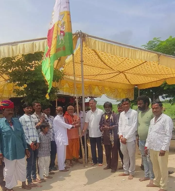 शाहपुरा:-रविवार को आसींद रोड निंबाहेड़ा के पास लोक देवता बाबा रामदेव के भंडारे का महंत सीताराम बाबा ने पूजा अर्चना कर बाबा रामदेव के ध्वज झंडे का रोपण नगर पालिका चेयरमैन रघुनंदन सोनी के मुख्य अतिथि में हुआ। पार्षद दुर्गा लाल कहार ने बताया कि हर वर्ष आसींद रोड पर बाबा रामदेव की भक्त मंडली जन सहयोग से इस भंडारे का आयोजन करते है।इसमें रामदेवरा जाने वाले भक्तों को निशुल्क चाय पानी भोजन और सोने बैठने की उत्तम व्यवस्था दी जाती है।