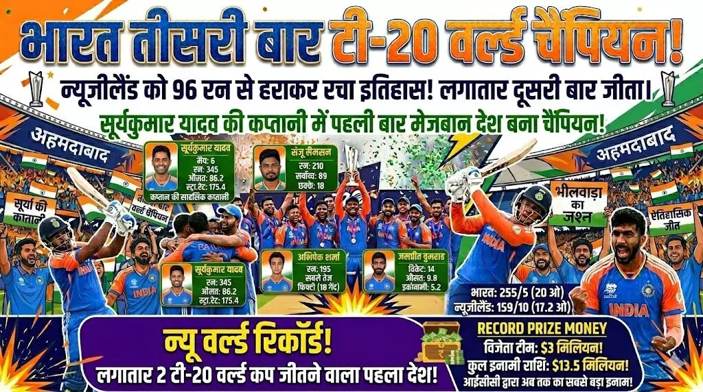 रिकॉर्ड 27.5 करोड़ की इनामी राशि पर किया कब्जा, भारत तीसरी बार टी-20 वर्ल्ड चैंपियन