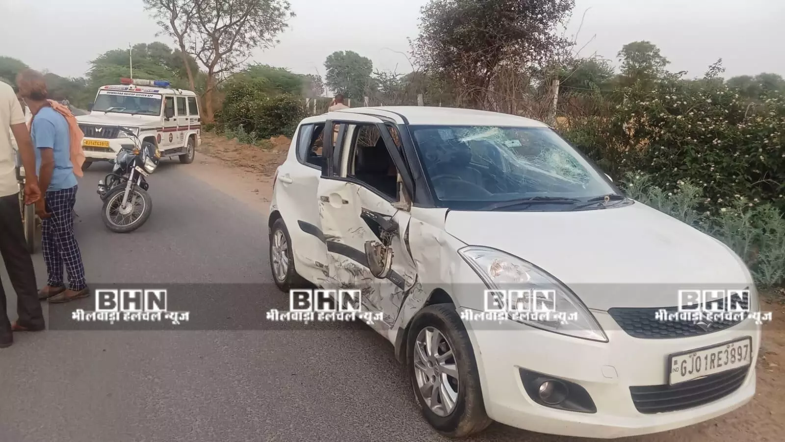 बागोर थाने के एएसआई गणपत सिंह ने बताया कि करेड़ा थाना क्षेत्र के अजीतपुरा निवासी शिवराम पुत्र ईश्वर गुर्जर, जगपुरा, रायपुर निवासी नारायण पुत्र भोजा गुर्जर और नारायण की पत्नी बाली गुर्जर मंगलवार को भीलवाड़ा से स्विफ्ट कार में सवार होकर रायपुर जा रहे थे। एएसआई सिंह ने बताया कि इनकी स्विफ्ट गाड़ी का भीलवाड़ा से ही डस्टर व एक अन्य वाहन में सवार लोग पीछा करने लगे। ये लोग, शिवराम व नारायण से पुरानी रंजिश रखे हुये हैं। बागौर थाने के भावलास के पास सुनसान जगह पर हमलावरों ने शिवराम की कार को जोरदार टक्कर मारी, जिससे गाड़ी रुक गई।