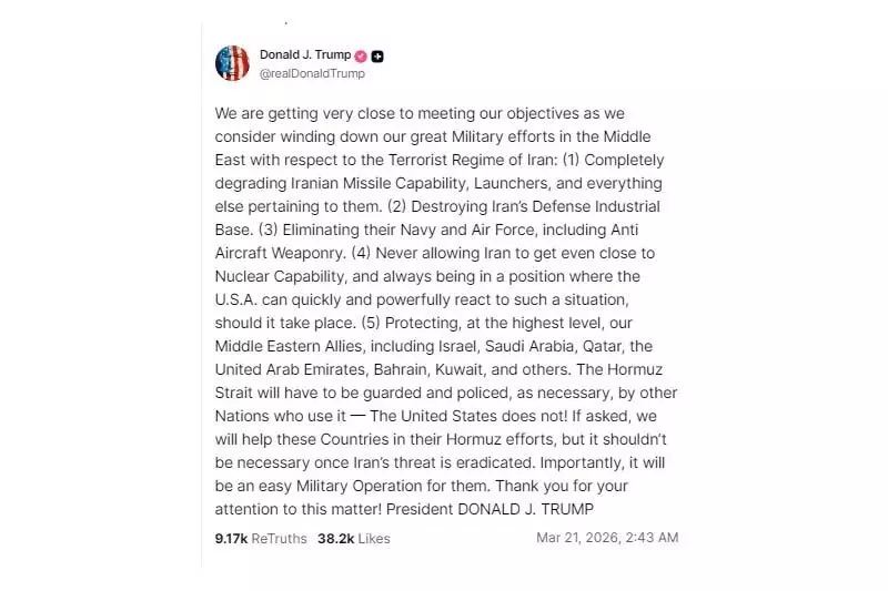 28 फरवरी से शुरू हुए इस युद्ध ने पूरे मध्य पूर्व (मिडिल ईस्ट) को दहला दिया है। ट्रंप ने लिखा, "ईरान के शासन के संबंध में अपने व्यापक सैन्य प्रयासों को समाप्त करने पर विचार करते हुए, हम अपने उद्देश्यों को पूरा करने के बहुत करीब पहुंच रहे हैं।" इस बयान को ईरान के खिलाफ 'सीजफायर' की दिशा में पहला बड़ा कदम माना जा रहा है।