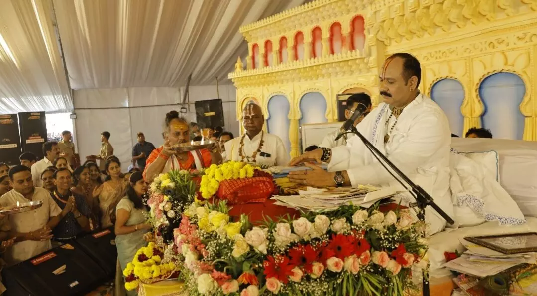 भीलवाड़ा । मेवाड़ की पावन धरा भीलवाड़ा में आयोजित सात दिवसीय श्री शिव महापुराण कथा के तीसरे दिन श्रद्धालुओं का ऐसा सैलाब उमड़ा कि मेडिसिटी ग्राउंड का विशाल पांडाल भी छोटा पड़ गया। साढ़े चार लाख वर्ग फीट में फैले डोम के खचाखच भर जाने के कारण हजारों श्रद्धालु पांडाल के बाहर खड़े होकर तल्लीनता से कथा श्रवण करते नजर आए।