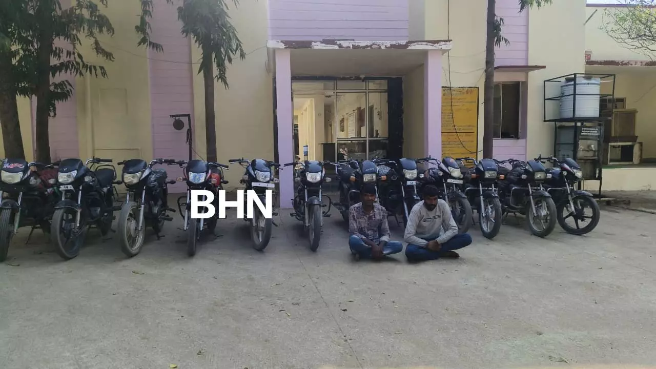 बाइक चोर गिरोह का भंडाफोड़-: कोर्ट परिसर से चोरी हुई बाइक से खुला राज, 12 मोटरसाइकिलें बरामद, दो शातिर चोर गिरफ्तार