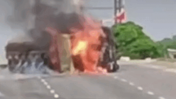 केमिकल टैंकर में लगी भीषण आग , जिंदा जला चालक , मची अफरा तफरी