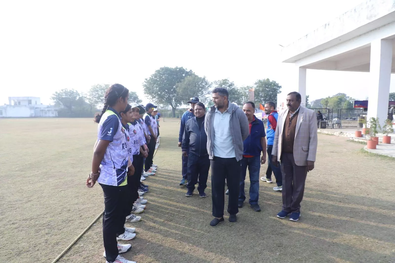 इससे पूर्व सुबह 9:00 बजे अशोक चांदना, पूर्व खेल मंत्री राजस्थान सरकार, एवं हेमेन्द्र सिंह राणावत, जिला खेल अधिकारी भीलवाड़ा, ने टीमों से परिचय प्राप्त किया और मैच का शुभारंभ किया।