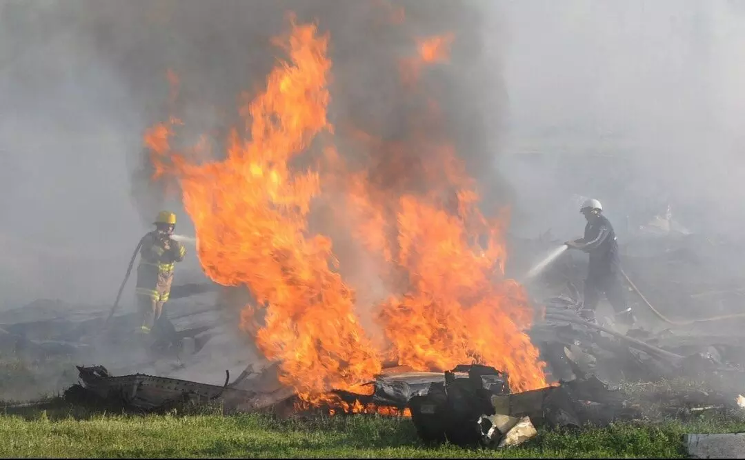 रनवे से टकराने के बाद विमान में हुआ विस्फोट