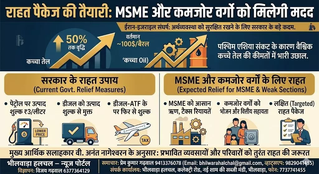 नई दिल्ली। पश्चिम एशिया (मिडल ईस्ट) में जारी युद्ध और ईरान-इजराइल संघर्ष के लंबा खिंचने की आशंकाओं के बीच केंद्र सरकार भारतीय अर्थव्यवस्था को सुरक्षित रखने के लिए बड़े कदम उठा सकती है। सूत्रों के अनुसार, सरकार विशेष रूप से सूक्ष्म, लघु और मझोले उद्यमों (MSME) और समाज के कमजोर वर्गों के लिए जल्द ही एक राहत पैकेज की घोषणा कर सकती है।