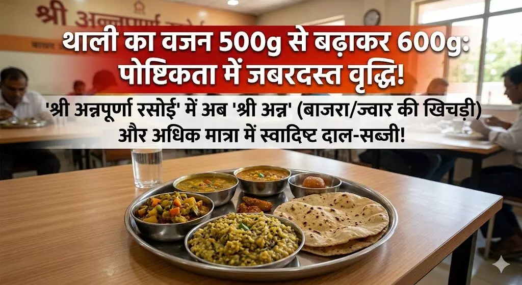 डबल इंजन सरकार ने न केवल भोजन की उपलब्धता सुनिश्चित की है, बल्कि इसकी गुणवत्ता और मात्रा में भी बड़ा बदलाव किया है। नई 600 ग्राम की थाली में अब 100 ग्राम दाल, 100 ग्राम ताजी सब्जी, 300 ग्राम चपाती और अचार के साथ 100 ग्राम चावल या फिर 'श्री अन्न' (बाजरा/ज्वार की खिचड़ी) परोसी जाएगी। मोटे अनाजों को शामिल कर सरकार ने पोषण सुरक्षा (Nutrition Security) की दिशा में ऐतिहासिक कदम उठाया है, जिससे आमजन को सेहतमंद खाना मिल सके।