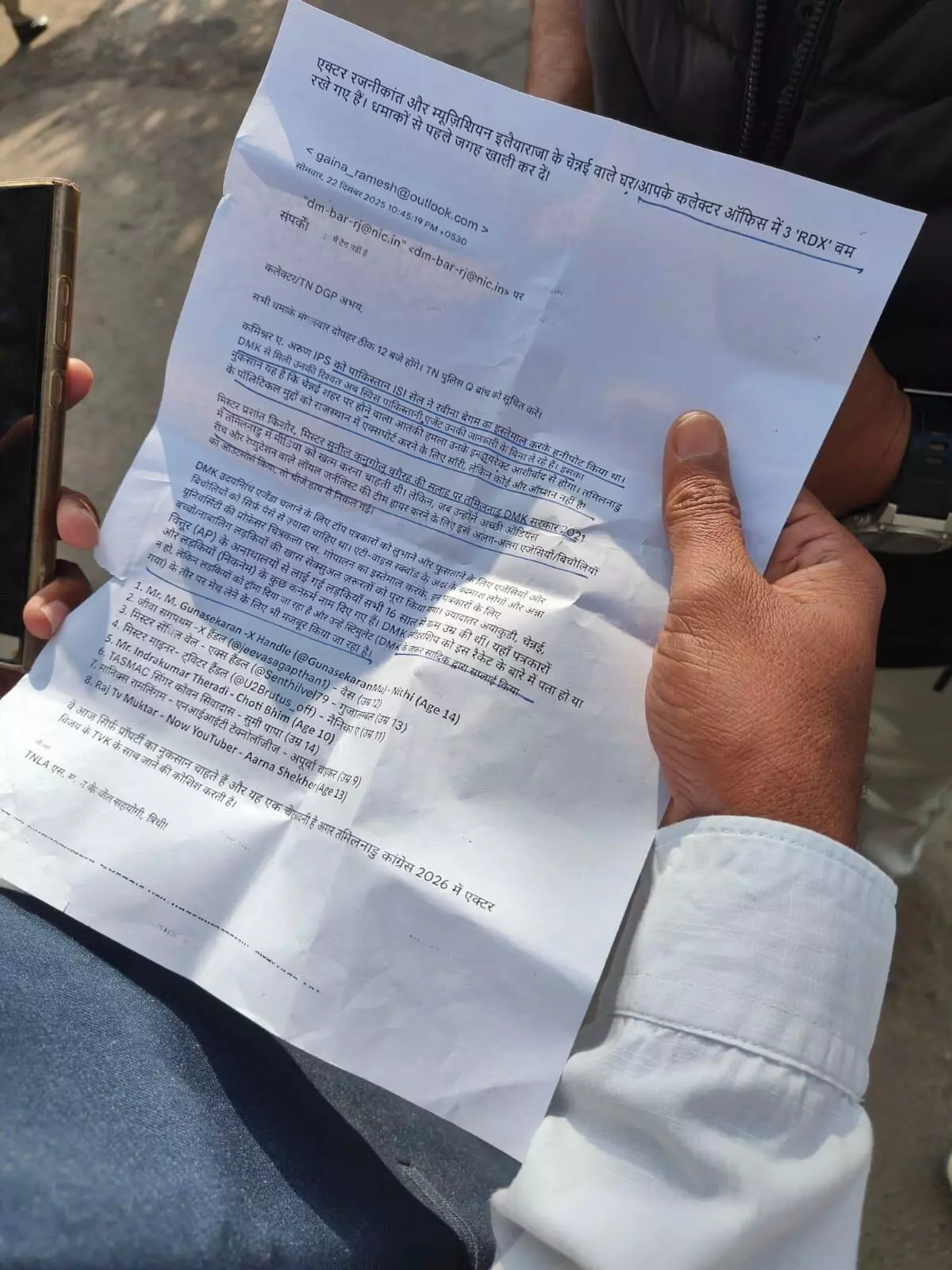 जानकारी के अनुसार मेल में बाड़मेर कलेक्ट्रेट के साथ-साथ तमिलनाडु के प्रसिद्ध अभिनेता रजनीकांत एवं वहां के अन्य बड़े नेताओं के घर और कार्यालयों में भी ब्लास्ट की धमकी दी गई थी। इस गंभीर सूचना के बाद प्रशासन ने तत्काल कार्रवाई करते हुए कलेक्ट्रेट परिसर में मौजूद कर्मचारियों और आम लोगों को बाहर निकाल दिया।