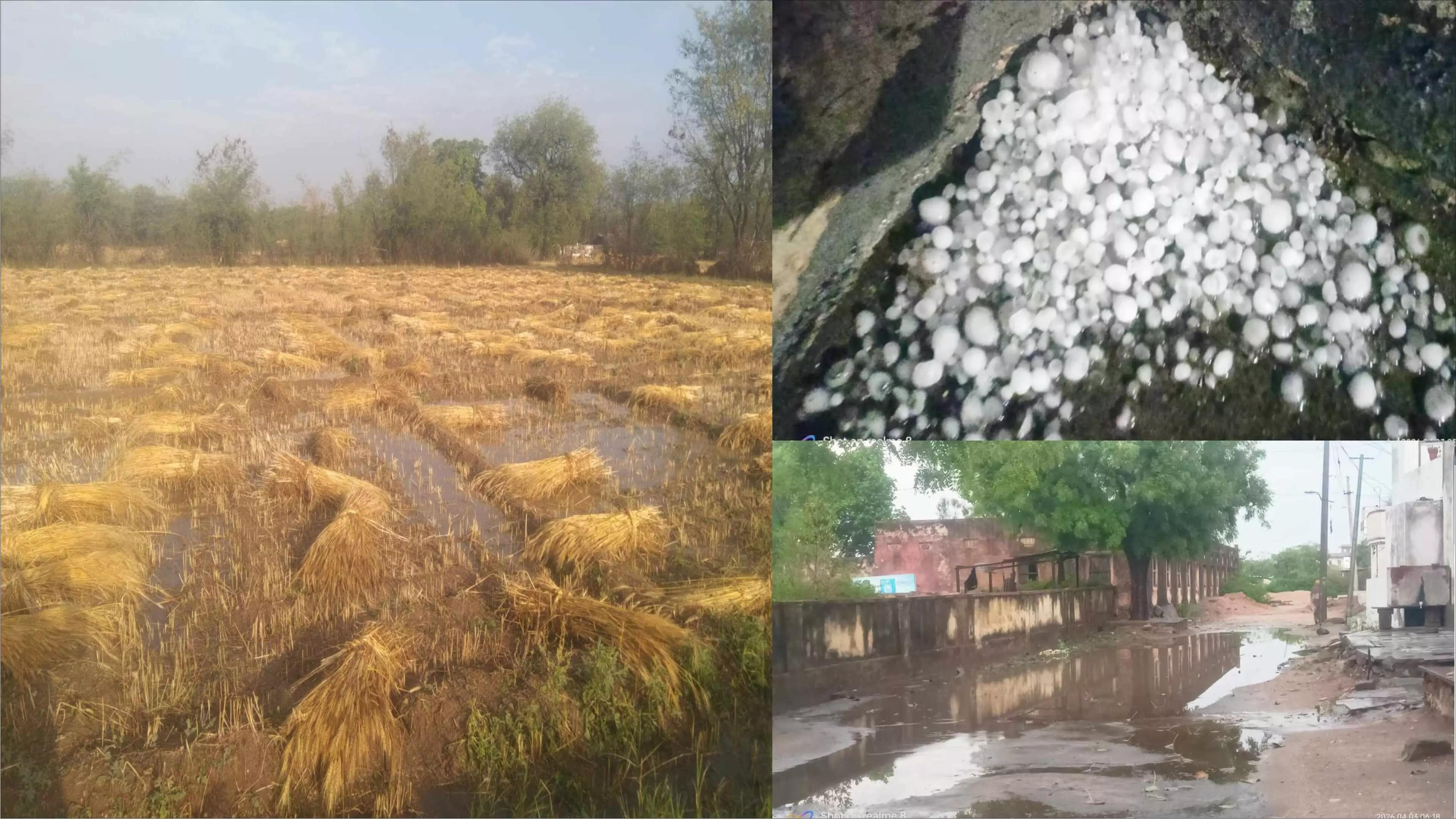 अंधड़ के तुरंत बाद क्षेत्र में ओलावृष्टि का दौर शुरू हुआ। बड़े आकार के ओले गिरने से पूरे इलाके में सफेद चादर बिछ गई। ओलावृष्टि के साथ हुई तेज बारिश ने खेतों में खड़ी और कटी पड़ी गेहूं की फसलों को भारी नुकसान पहुँचाया है।