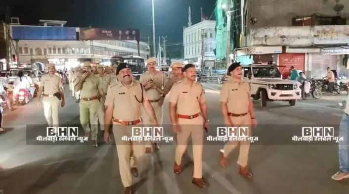 भीलवाड़ा बीएचएन। मोहर्रम के त्योंहार को देखते हुये शुक्रवार को पुलिस ने शहर में फ्लैग मार्च निकाला।
