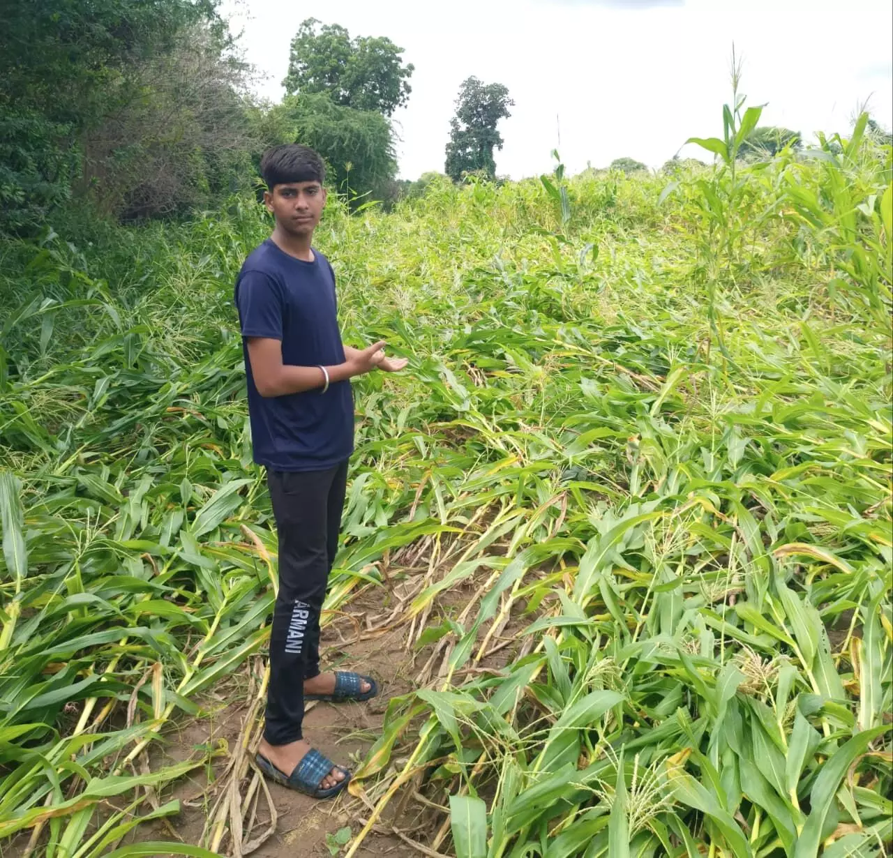 तेज बारिश से मक्के की फसल गिरी