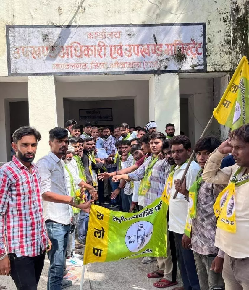 रालोपा का फसल खराबे के मुआवजे को लेकर एसडीएम कार्यालय पर मुख्यमंत्री के नाम ज्ञापन