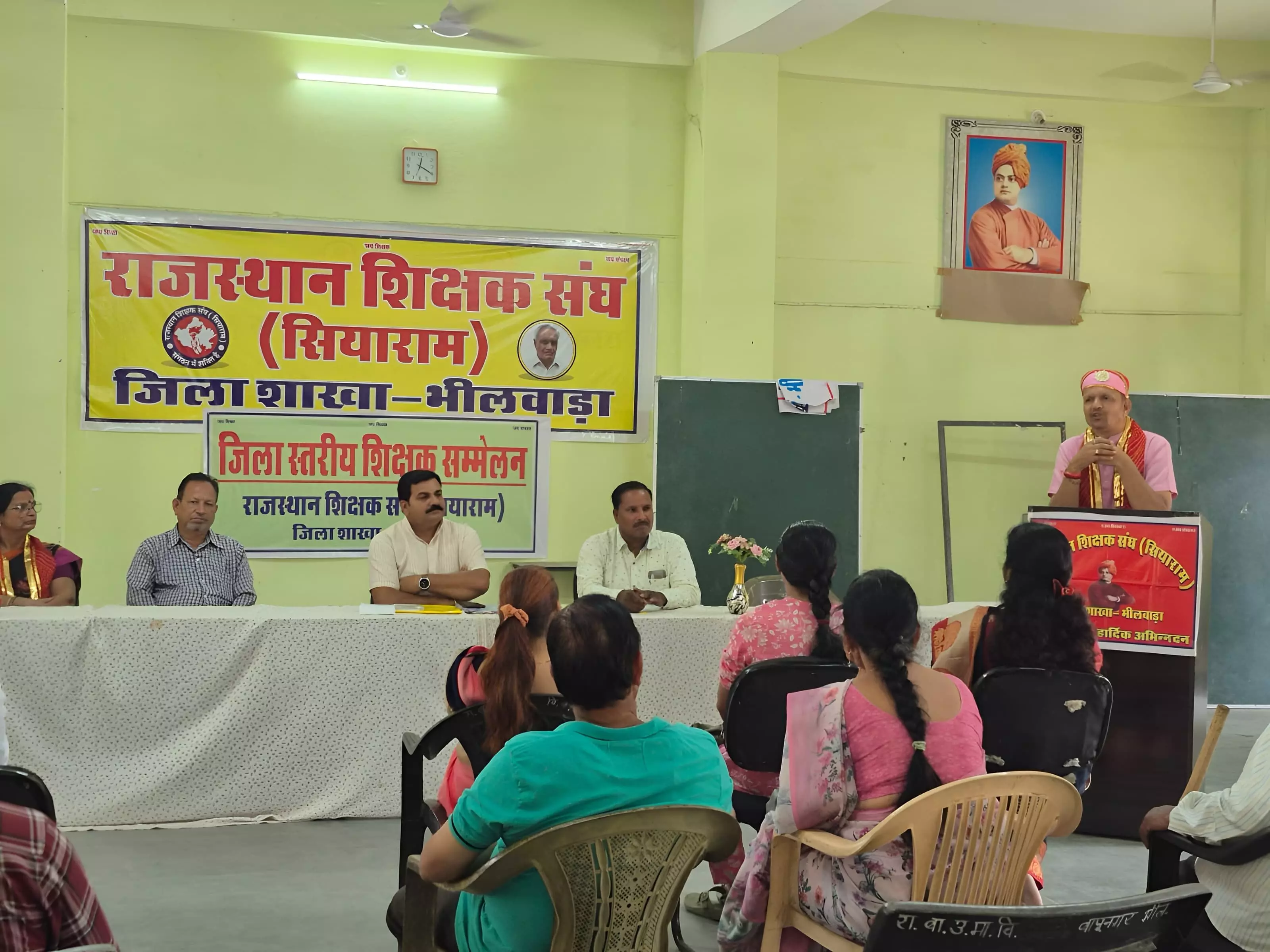 उन्होंने शिक्षकों को बालकों के मन में शिष्टाचार, राष्ट्रवाद व संस्कार सम्प्रेषण को प्राथमिकता देने की बात कही। शर्मा ने बताया कि संगठन के 26 सूत्रीय मांग पत्र में ग्रीष्मावकाश में विद्यालयों का भौतिक निरीक्षण पीडब्ल्यूडी के तकनीकी विशेषज्ञ से करवा कर भवन सुरक्षा प्रमाण पत्र जारी करने, स्थाई और पारदर्शी स्थानांतरण नीति लागूकर तृतीय श्रेणी शिक्षकों के अन्तर जिला स्थानांतरण तुरंत करने,पुरानी पेंशन योजना लागू करने, सातवें वेतन आयोग की विसंगतियां दूर कर सातवां वेतनमान हूबहू लागू करने,2004 के बाद नियुक्त शिक्षकों की एनपीएस की राशि जीपीएफ में जमा करने, बीएलओ सहित गैर शैक्षणिक कार्यों से शिक्षकों को मुक्त करने,प्रबोधकों का पदनाम बदलकर अध्यापक करने एवं सभी सुविधाएं प्रदान करने, कंप्यूटर अनुदेशक का नाम बदलकर कंप्यूटर शिक्षक करने, ग्रामीण क्षेत्र में कार्यरत शिक्षकों को ग्रामीण भत्ता देने,पीईईओ को हार्ड ड्यूटी एलाउंस देने,शिक्षकों को इंटरनेट भत्ता देने,शिक्षकों की सुरक्षा हेतु 'शिक्षक सुरक्षा अधिनियम' बनाकर लागू करने,प्लेसमेंट एजेंसी द्वारा नियुक्त व्यवसायिक प्रशिक्षकों को नियमित करने सहित कई मांगे शामिल है। दो दिवसीय सम्मेलन में शिक्षकों व शिक्षार्थियों की विभिन्न मांगों पर चर्चा एवं पारित प्रस्तावों के आधार पर संगठन द्वारा प्रस्ताव बनाकर आगामी दिनों में सरकार को भेजा जाएगा ।प्रदेश पदाधिकारी भारती झा ने संगठन की रीति-नीति पर विस्तृत चर्चा की ।द्वितीय सत्र में संगठन की जिला कार्यकारिणी एवं उपशाखा पदाधिकारियों की संयुक्त बैठक जिलाध्यक्ष राजेंद्र कुमार शर्मा की अध्यक्षता में आयोजित की गई । बैठक में विभिन्न पदाधिकारियों ने क्षेत्र के कई शिक्षकों की विभिन्न मांगों पर चर्चा की एवं शिक्षकों की समस्याओं के निराकरण हेतु कार्ययोजना बनाई । इस अवसर पर जिला कार्यकारिणी के 25-26 के चुनाव कराने,उप शाखाओं के गठन एवं सदस्यता बढ़ाने हेतु कार्यकारिणी सदस्यों की जिम्मेदारी तय की ।समापन सत्र में राजीव पिल्लई,नीलम सिन्हा,मुकेश कुमार शर्मा,लीलाधर तिवाड़ी,रमेश जोशी,अजय कुमार जैन,रमाकांत तिवाड़ी,सुमित कुमार मुरारी,योगेंद्र जैन,सत्यनारायण खटीक,सारिका चतुर्वेदी,सत्यनारायण ओझा,राजेश शर्मा,ओम प्रकाश भांभी,ओम प्रकाश सेन,शोभा लाल,भावना भार्गव एवं कई शिक्षक पदाधिकारी उपस्थित थे ।