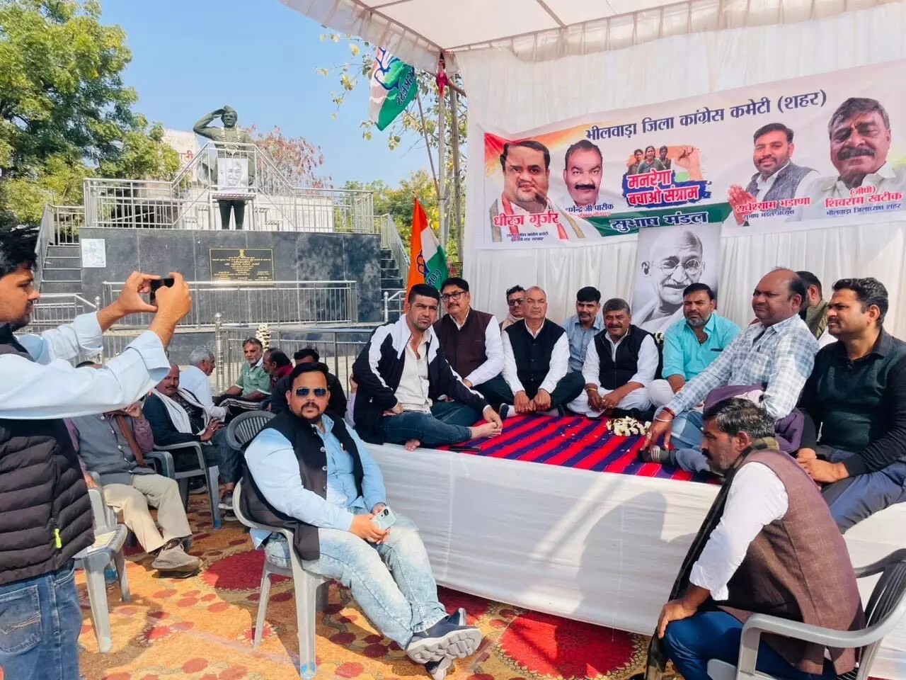 भीलवाड़ा: जिला कांग्रेस कमेटी (शहर) के सुभाष मंडल द्वारा केंद्र सरकार की नीतियों के खिलाफ 'मनरेगा बचाओ आंदोलन' के तहत रविवार को सुभाष नगर में एक दिवसीय धरना और अनशन किया गया। यह प्रदर्शन सुभाष नगर स्थित छोटी पुलिया पर प्रातः 11:00 बजे से दोपहर 1:00 बजे तक चला।