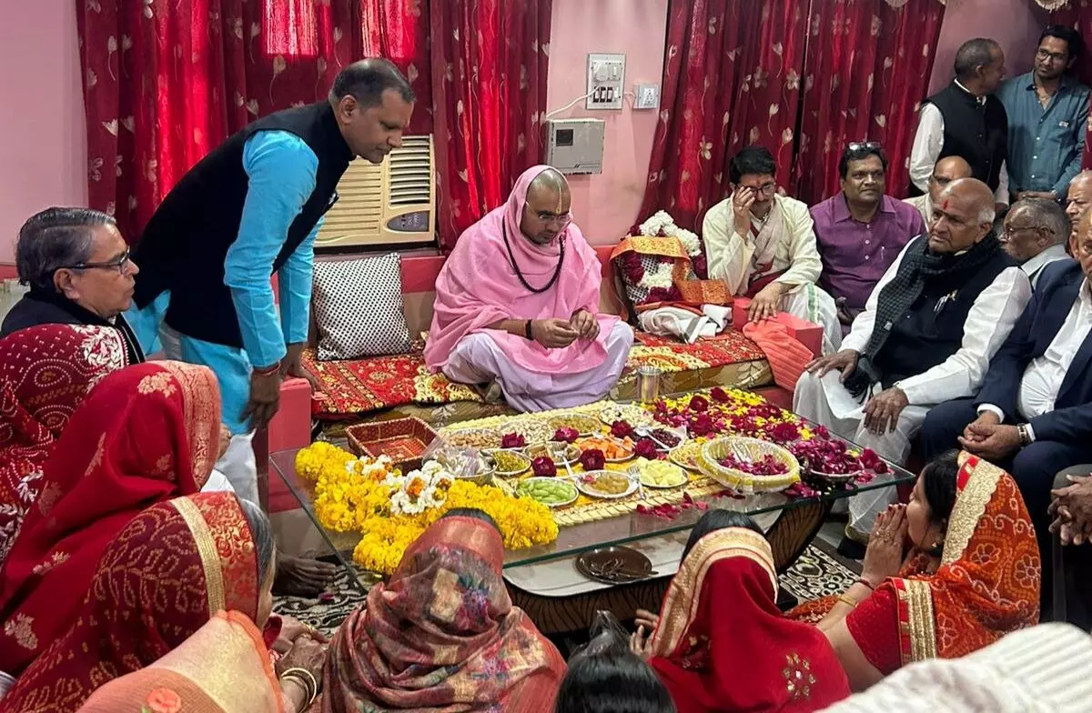 भीलवाड़ा । शहर में चल रही श्रीमद् भागवत कथा के अवसर पर रामस्नेही संप्रदाय के संत दिग्विजय राम महाराज ने विभिन्न स्थानों पर भक्तों के घर पहुंचकर पदरावणी की और सत्संग प्रवचन दिए। इस दौरान बड़ी संख्या में श्रद्धालु मौजूद रहे और भक्ति माहौल से पूरा क्षेत्र गूंज उठा।