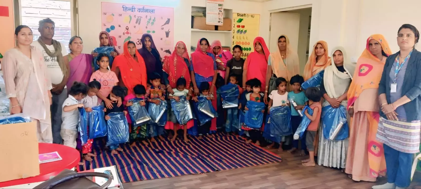 महिला एवं बाल विकास विभाग की महिला पर्यवेक्षक सीता गाडरी के कर कमलों द्वारा उपस्थित सभी बच्चों को स्कूल बैग एवं पानी की बोतलों का वितरण किया गया। साथ ही अभिभावकों को बच्चों की नियमित उपस्थिति, स्वच्छता, पोषण तथा शिक्षा के महत्व के बारे में महत्वपूर्ण जानकारी प्रदान की गई। इस अवसर पर उपस्थित पंजीकृत बच्चों के सभीअभिभावकों ने इस सराहनीय पहल के लिए संस्था के प्रति आभार व्यक्त किया और बच्चों को नियमित रूप से केंद्र पर भेजने का संकल्प लिया। कार्यक्रम का संचालन क्लस्टर सुपरवाइजर सरला राव द्वारा किया गया l आंगनवाड़ी कार्यकर्ता रामकन्या वैष्णव एवं सहायिका का कार्यक्रम के सफल संचालन के लिए आभार बताया l