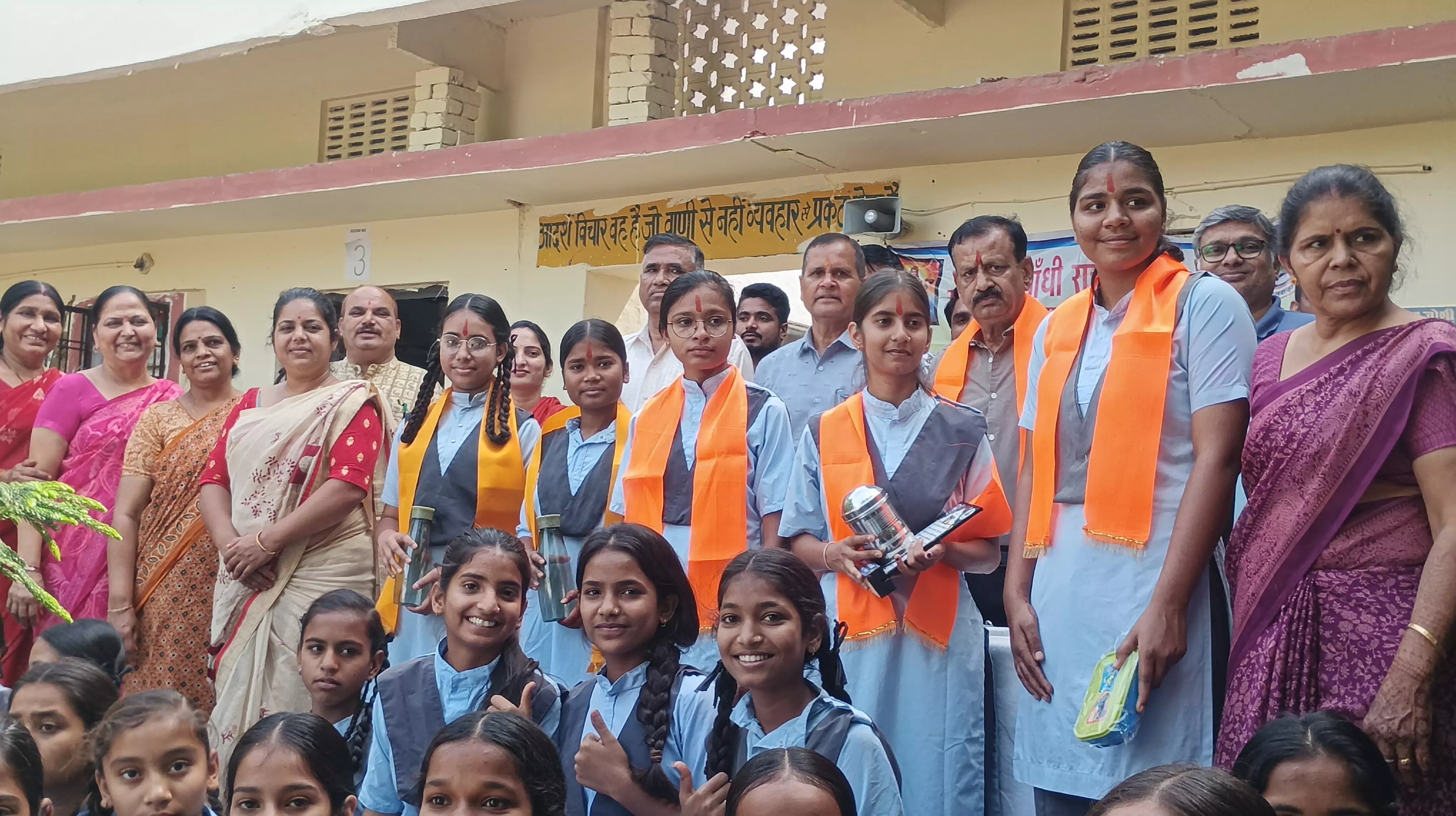 प्रधानाचार्य प्रेम शंकर जोशी की अध्यक्षता एवं एसडीएमसी विधायक प्रतिनिधि नवरतन मल पानगड़िया के मुख्य आतिथ्य में आयोजित कार्यक्रम में छात्राओं का अभिनंदन किया गया। शारीरिक शिक्षक मीना सिंघवी, व्याख्याता लता परिहार और भावना शर्मा ने मेधावी बालिकाओं को तिलक लगाकर, ऊपरना पहनाकर और स्मृति चिह्न के रूप में टिफिन व पानी की बोतल भेंट कर सम्मानित किया।